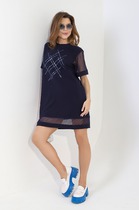 Молодежная свободная туника из вискозы с большим принтом вид ангелов, горловина с широкой отделкой