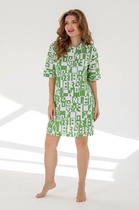 Туника полуприлегающего силуэта, средней длины, с V-образной горловиной, с боковыми карманами. Декоративные рукава украшены вставками из сетки и оборками. В верхней части полочки расположены вставки из сетки. В нижней части боковых швов обработаны разрезы. Горловина, декоративные вырезы на рукавах обработаны бейкой из основного полотна.