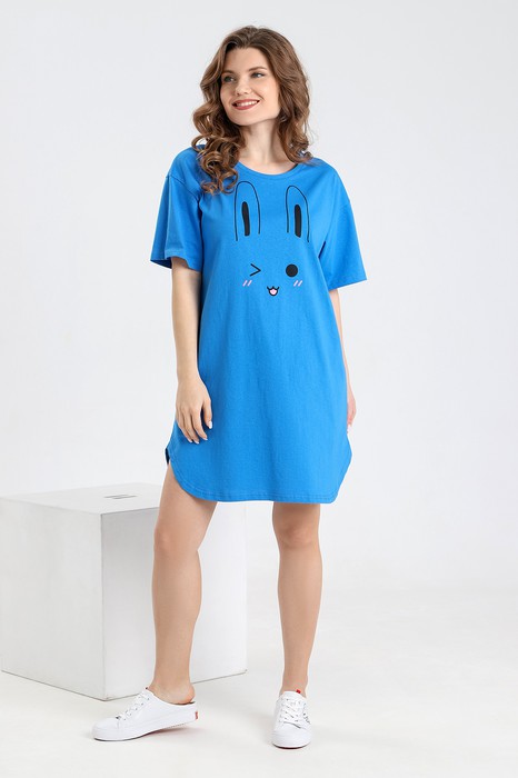 Туника молодежная из трикотажного полотна «кулирка» с набивным рисунком и принтом. Прямого силуэта, с коротким втачными рукавами, горловиной овальной формы, окантованной основным материалом, принт в технике «шелкографии» на полочке и фигурной линией низа.