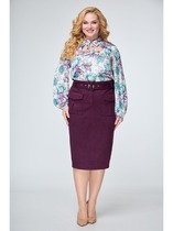 Юбка женская полуприлегающего силуэта. По переду юбки имитация запаха с декоративным хлястиком уходящим в боковой шов. Юбка по спинке со средним швом и талиевыми вытачками. В среднем шве застежка на потайную молнию.