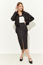 Vilatte Юбка-миди из хлопка с разрезом D26.182 темно-бежевый