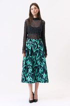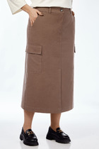 Юбка с элементом запаха, на притачном поясе. Выполнена из костюмной ткани в чёрном цвете, без подкладки.  В новейших моделях запах располагается спереди сбоку. Это формирует изящный вырез треугольной формы, который смотрится очень женственно.