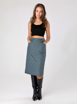 Юбка прямого кроя. Выполнена из костюмной ткани цвета хаки с декоративной вышивкой. На брендированной подкладке. Пояс стабильный. В среднем шве заднего полотна разрез (49 см). Застёжка молния в среднем шве заднего полотна. Длина юбки 96 см