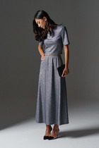 Юбка полуприлегающего силуэта выполнена из ткани плащевки на брендированной подкладе. Характеристики: полуприлегающий силуэт, пояс на резинке, по низу изделия пришито кружево. Длина по боковому шву 77 см.