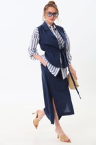 Юбка прямого кроя выполнена из текстильного полотна черного цвета. Характеристики: прямой крой, брендированная подкладка, пояс стабильный, застежка молния и пуговичка, по передней и задней части изделия вертикальные прямые рельефы. Длина юбки 47 см.