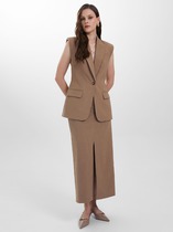Юбка прямого кроя, выполнена из струящейся ткани коричневого цвета. Характеристики: прямой крой, на подкладке, пояс на резинке. Длина по боковому шву 42 см.
