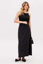 Vilatte Юбка с разрезом из тонкого премиального футера с эластаном D46.034 черны