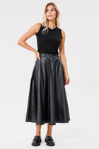 • Юбка с поясом, в котором со стороны спинки закреплена эластичная лента. В боковом шве обработана потайная застёжка-молния. Пояс застёгивается на пуговицу и петлю. Прилагается пояс с декоративной пряжкой, который фиксируется шлёвками.