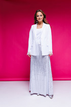 Эта женская юбка длины «миди» изготовлена с подкладкой для дополнительного комфорта и идеальной посадки. Модель имеет свободный крой, расширяющийся к низу, что придает силуэту женственность и легкость. Перед и спинка украшены аккуратным средним швом, добавляющим структуру и элегантность.