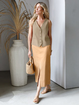 Vilatte Юбка-миди из хлопка с разрезом D26.182 темно-бежевый
