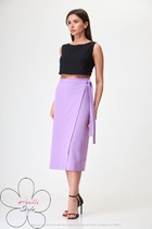 Юбка с пришивным поясом, застежкой на потайную молнию в среднем шве заднего полотнища. Заднее полотнище с талиевыми вытачками. Заднее полотнище со средним швом, заканчивающимся разрезом.