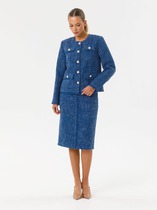 Юбка-карандаш из однотонной костюмной ткани. Модель на кокетке, дополнена шлевками под ремень. По бокам выполнены накладные карманы. В боковом шве – застежка на потайную молнию. Низ ровный, дополнен разрезом со встречными веерными складками. На подкладе.