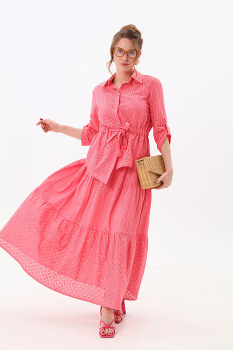 Юбка - солнце макси с узким поясом на резинке с тремя воланами.