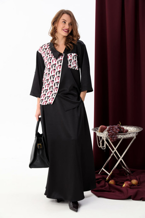 Юбка - солнце макси с узким поясом. В боковых швах расположены карманы. Застёжка на петлю и пуговицу и молнию по спинке.