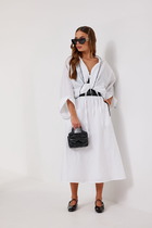 Женственная юбка силуэт трапеция длины миди. По переду заложены встречные складки. Имеются боковые карманы. Эта модель подчеркивает стройность фигуры и слегка приоткрывает ножку.