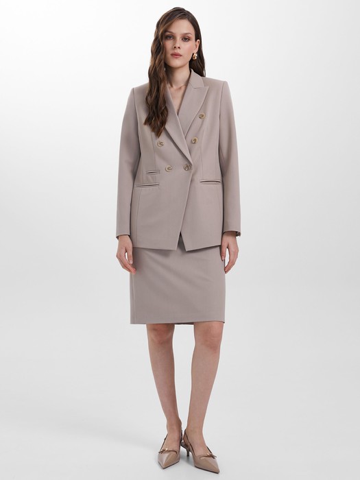 Модель прямого силуэта, без пояса, на подкладе. Спереди прорезные карманы в рамку. Сзади в среднем шве обработаны шлица и потайная застёжка молния.
