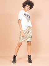Переднее полотнище с талиевыми вытачками. Заднее полотнище с талиевыми витачками и средним швом, в верхней части с застежкой на потайную тесьму-молнию, в нижней – со шлицей. Средняя длина юбки по боковому шву заднего полотнища 63,0см (±3,0 см). Тип ткани: трикотажное полотно.