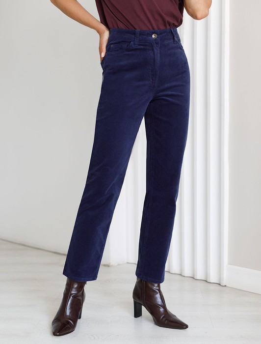 Укороченные эластичные брюки слим из микро вельвета