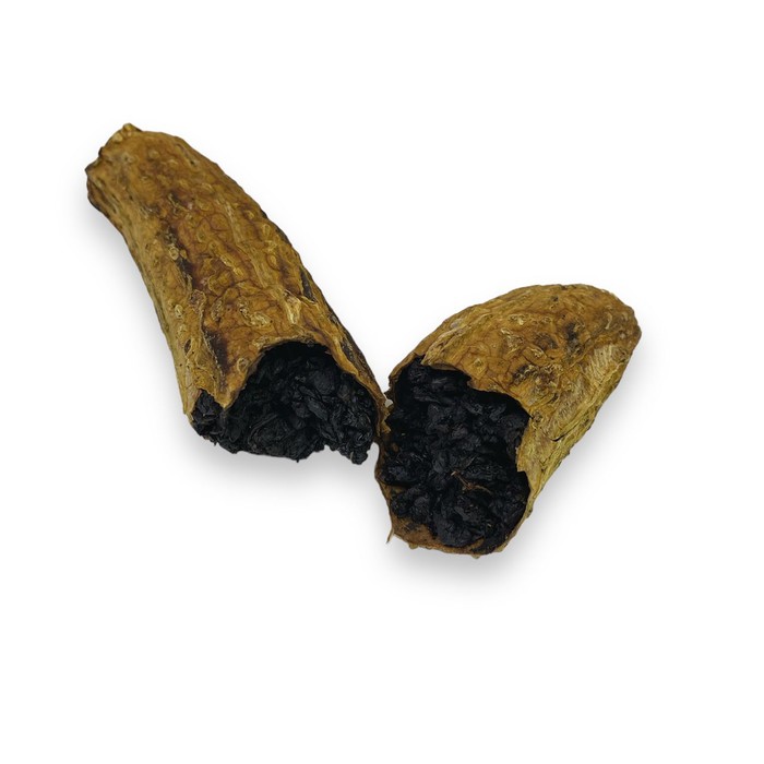 Печеный плод «китайского огурца», внутри которого чайные листья черного цвета