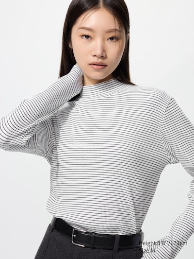 uniqlo Langarmshirt (gerippt, hoher Kragen, gestreift)