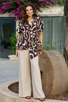 Брючины слегка заужены к низу, на щиколотках — плотные манжеты, благодаря которым обладательницам этих брюк не страшны ни снег, не холодный ветер. Пояс -резинка, внутри имеется шнурок для регулировки талии, два боковых кармана на молнии.