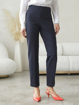 Стильные женские брючки на поясе с завышенной линией талии. Модель прямого кроя, на поясе — молния с клепкой, по бокам вшита резинка, имеются два боковых кармана.