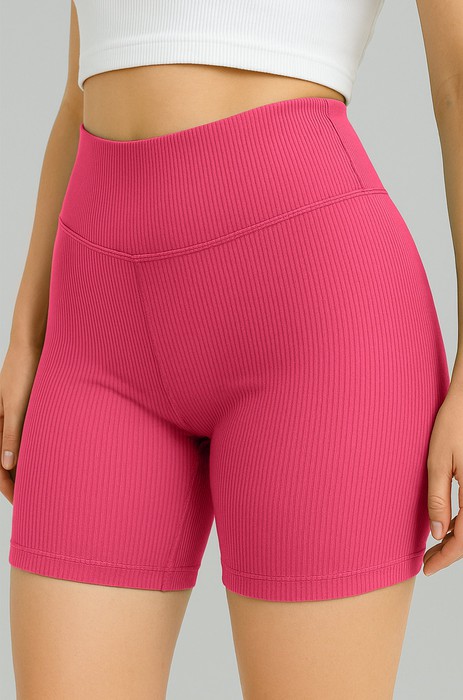 Широкая эластичная резинка нежно прилегает и не сдавливает живот. Благодаря облегающему крою розовые велосипедки в рубчик повторяют каждое движение тела.