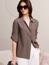 Блузка классического прямого кроя с длинными рукавами на манжетах и застежкой на планку с пуговицами.