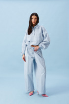 Женские джинсы из 100% хлопка свободного кроя, зауженные книзу, с поясом на резинке и завышенной линией талии. Модель с классическими 5 карманами и подворотами.