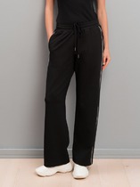 Свободные женские брюки с разрезами и боковыми карманами из плотного гладкого трикотажа интерлок. Низ обработан плоскими швами.