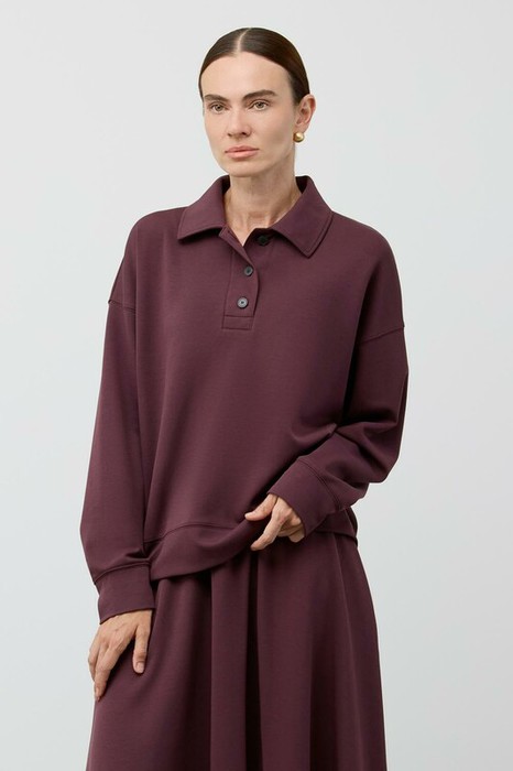 Джемпер-поло, созданный из премиального трикотажного материала DOUBLE FACE с добавлением эластана, отличается непревзойденным качеством. Инновационная каучуковая обработка ткани подчеркивает ее воздушность и нежность. Оригинальный крой с заниженной линией плеча придает изделию современный силуэт. Широкие манжеты и пояс подчеркивают свободный и непринужденный стиль, делая джемпер идеальным выбором для повседневного образа.