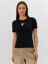 Базовая женская футболка из натурального хлопка с добавлением эластана. Принт изготовлен из стойких текстильных красителей.