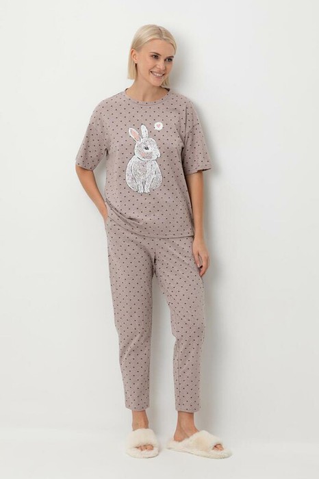 Very Neat пижама жен Е 20053/24/бежевый меланж,сердечки