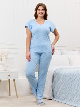 Легкий комплект для комфортного сна и отдыха. Свободная футболка с принтом и спущенной линией плеча комфортно садится по фигуре. Укороченные брюки с удобными боковыми карманами выполнены из набивного трикотажа. Гладкий материал приятен к телу и позволяет коже дышать.