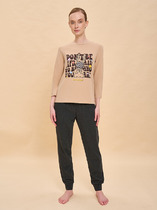 Легкий комплект для комфортного сна и отдыха из натурального хлопка. Футболка с V-образным вырезом комфортно садится по фигуре.  Брюки с поясом на резинке выполнены из набивного трикотажа. Гладкий материал приятен к телу и позволяет коже дышать.