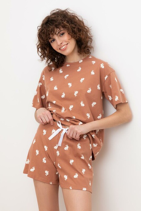 Very Neat пижама жен Е 20078/кофейный мусс,белые кролики