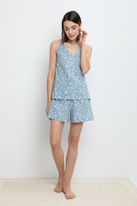 Комплект для комфортного сна из натурального  хлопка с добавлением лайкры. Майка на регулируемых  бретелях удобно садится по фигуре. Шорты с мягким поясом на резинке. Гладкий материал приятен к телу, не теряет форму и позволяет коже дышать.