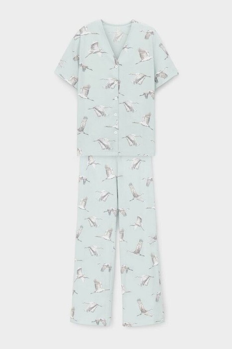 Very Neat пижама жен (рубашка ночная, брюки) Е 20153/туманный голубой, журавли