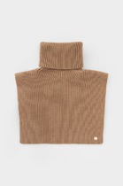 Уютная вязаная манишка с высоким воротником из шерсти и акрила. Шерсть в составе хорошо удерживает тепло, а волокна акрила делают изделие мягким и предотвращают деформацию и появление катышек. Лаконичный крой хорошо сочетается с верхней одеждой.