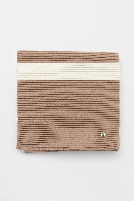 Уютный вязаный шарф с полосками из шерсти и акрила. Шерсть в составе сохраняет тепло, а волокна акрила придают изделию мягкость и объем.