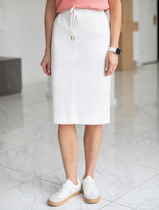 Струящаяся юбка из 100% хлопка пике с небольшой рельефной текстурой дарит ощущение комфорта и легкости. Крупные астры придают изделию летнее настроение.