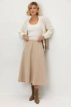 Юбка-полусолнце выполнена из инновационного высококачественного трикотажного полотна DOUBLE FACE, который сочетает в себе мягкость натуральных волокон и долговечность современных технологий. Мягкая резинка на поясе обеспечивает комфортную посадку без ощущения давления и дискомфорта.