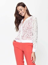 Укороченная трикотажная куртка на молнии с карманами и кулиской по низу. Произведена из мягкого набивного трикотажного футера. Спущенные рукава и манжеты добавляют объем.