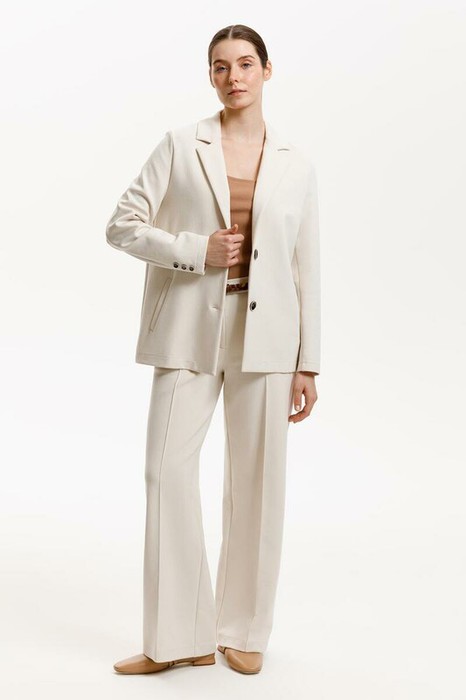 Однобортный жакет приталенного силуэта из премиального трикотажа DOUBLE FACE. За счет фактуры переплетения, добавления спандекса и специальных обработок сохраняет силуэт и форму. Хлопок в составе добавляет комфорта при носке.