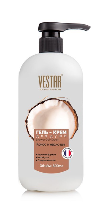 Совместные покупки Каменск-Уральский Косметика и парфюмерия Уход за телом — Vestar Гель-крем д/душа 800мл Кокос и масло Ши флакон с дозатором (9812)