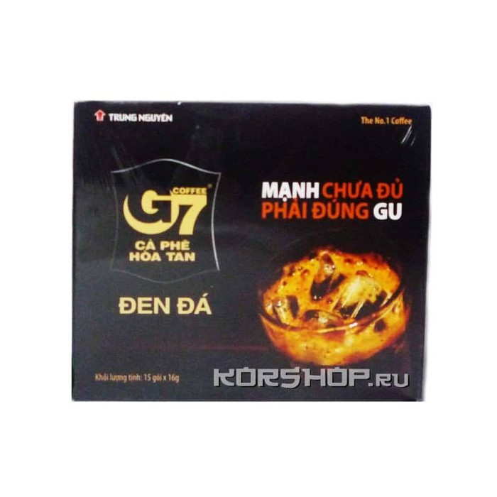Вьетнам в 2012 г стал лидером в экспорте кофе, обогнав Бразилию, много лет занимавшую первое место по производству и продаже кофе в мире. Состав вьетнамского кофе G7 2 в 1 от Trung Nguyen не содержит лишних ингредиентов, в нем только кофе, мальтодекстрин и сахар. Обладает насыщенным вкусом, бесподобным ароматом. Расфасован в пакетики, которые удобно брать с собой в офис или на пикник. Как приготовить вьетнамский кофе? 1 вариант: Добавьте 1 пакетик кофе G7 2 в 1 в 50 мл горячей воды 96-100 град. С, перемешайте. 2 вариант: Добавьте 1 пакетик кофе G7 2 в 1 в 40 мл горячей воды 96-100 град. С, перемешайте, дайте остынуть, добавьте кубики льда. Пейте охлажденным. Такое кофе прекрасно освежает в жару и тонизирует. Прошел международную сертификацию HACCP, ИСО 9001. Вес нетто 240 г Пр-во Вьетнам. Срок годности 2 года. Купить вьетнамский кофе G7 2 в 1 с доставкой по Москве и Подмосковью можно в магазине азиатских продуктов Коршоп.ру. Также отправляем почтой и транспортной компанией.