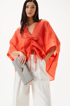 Базовая блузка из хлопка со спандексом, с аккуратным принтом - отличное решение для летнего офиса, идеальный комфорт в комплектах с жакетами. Пуговицы под натуральный перламутр. Спинка украшена золотистым лого.