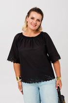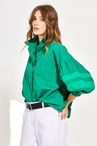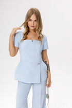 Укороченная блузка с пышными рукавами-фонариками выполнена из легкого хлопкового поплина. Супатная застежка на пуговицы из натурального перламутра. Внизу кулиса с лентами из основного полотна. В изделии будет комфортно, даже в самое жаркое время года. Подходит для любой фигуры. Сочетается в костюме с кюлотами D24.233 и юбкой D26.179