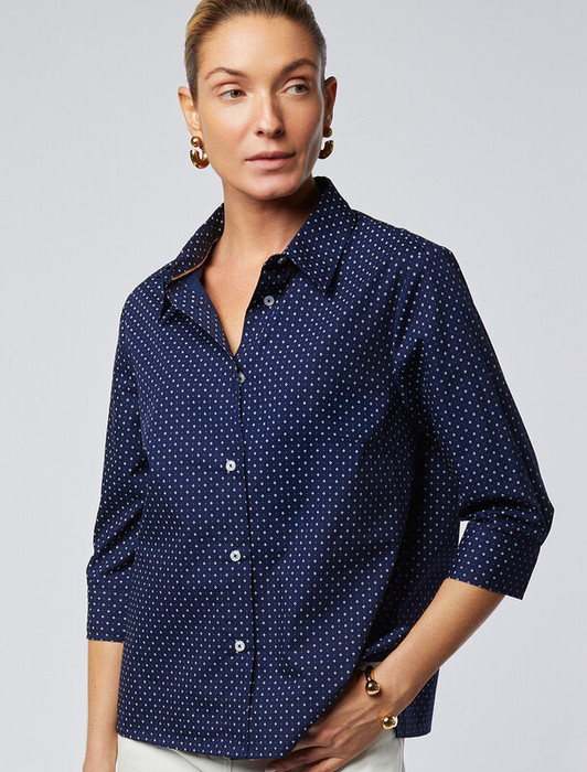 Vilatte Блузка с укороченным рукавом из поливискозы D29.262 темно-синий-белый