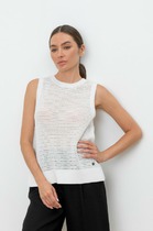 Свободный крой блузки и спущенная линия плеча дарят ощущение легкости и непринужденности, делая образ одновременно женственным и современным. Широкие рукава средней длины гармонично дополняют образ и идеально подходят для полных рук, обеспечивая комфорт, свободу движений и уверенность. Аккуратная застежка на маленькую пуговицу добавляет утонченности, а круглый вырез красиво обрамляет шею, создавая аккуратную линию декольте.